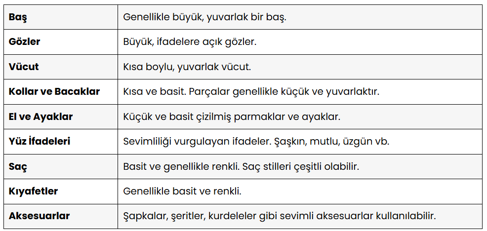 Chibi Karakterlerin Genel Özellikleri Tablosu